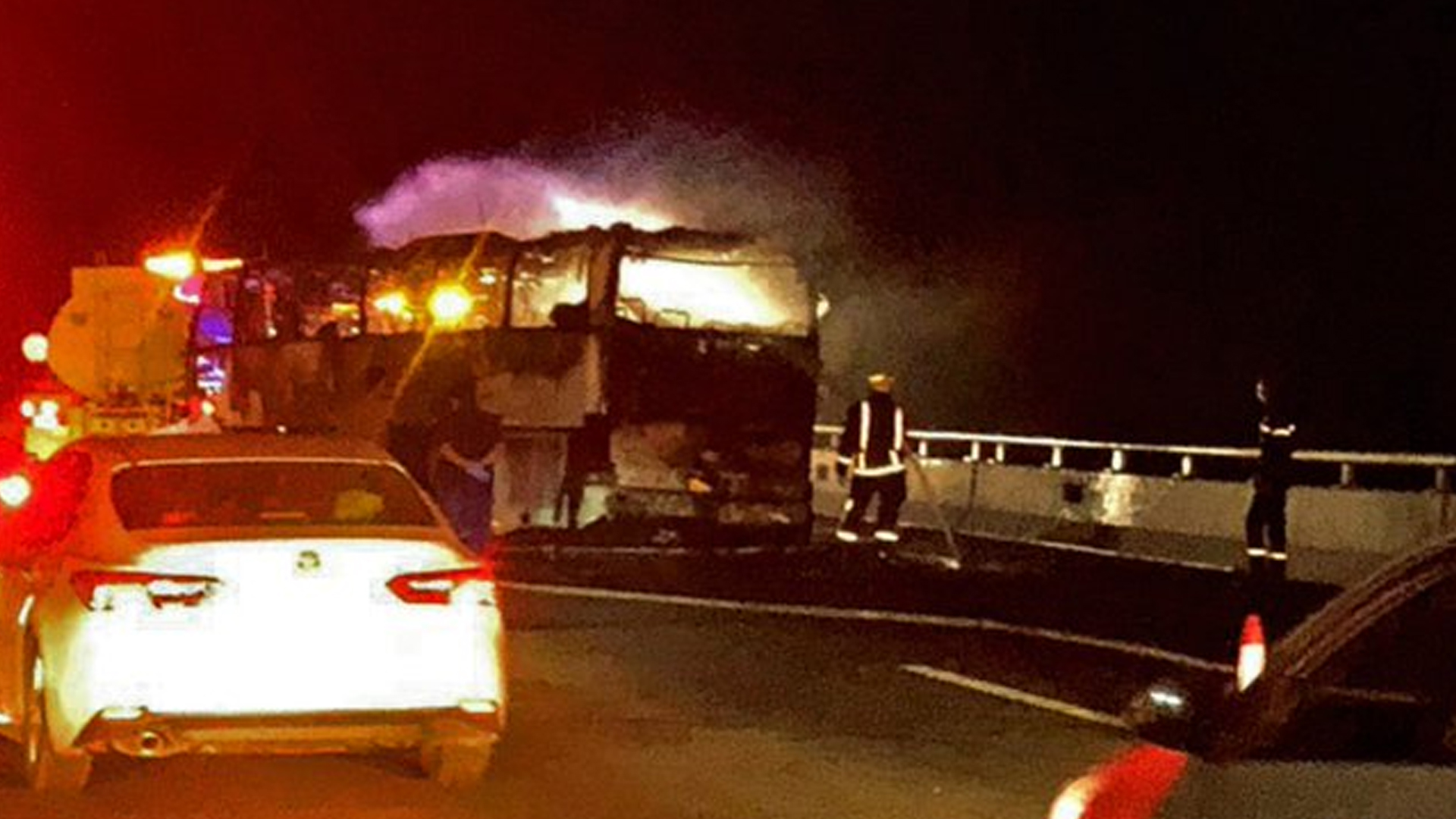 The crash occurred around 1:30 am when a bus carrying pilgrims collided with a diesel tanker, causing a massive fire that completely destroyed the vehicle. The impact was so severe that many bodies were “charred beyond recognition,” and authorities said DNA testing would be needed to identify the deceased.