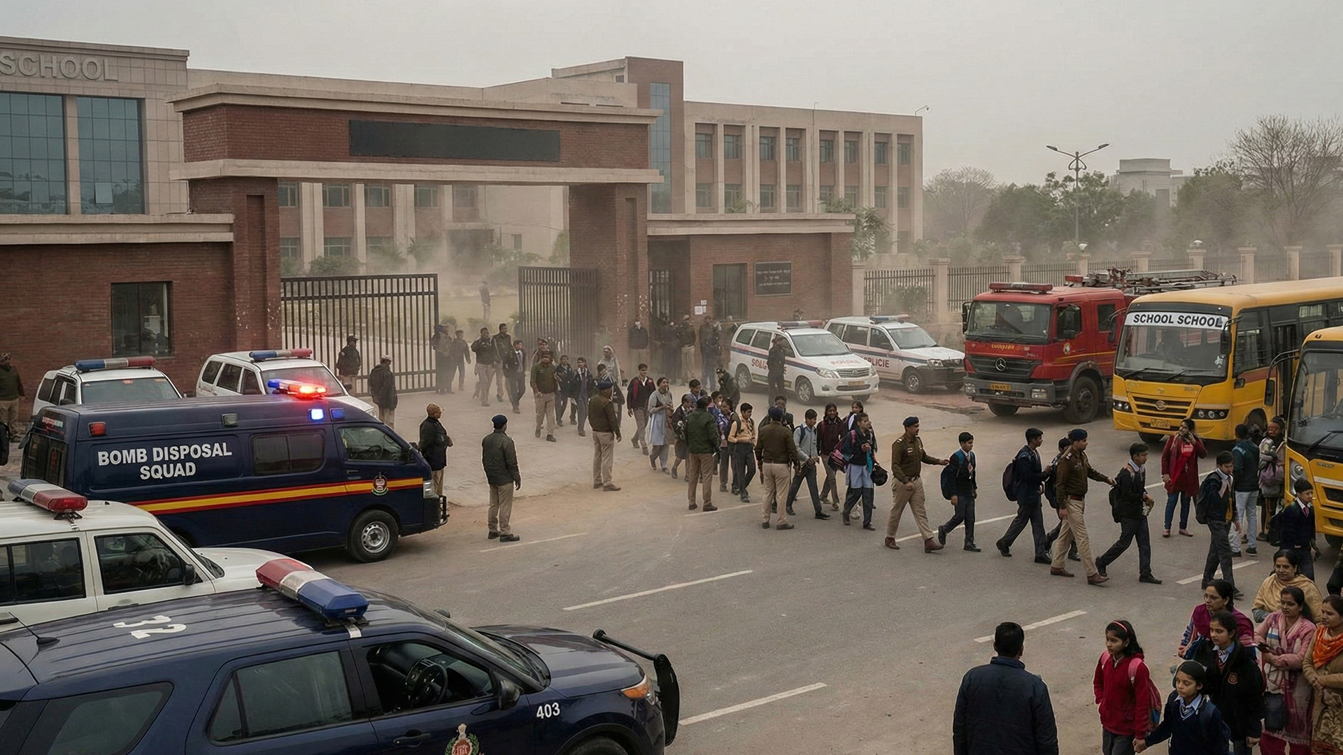 In Noida, prominent schools, including Shiv Nadar School, Cambridge School, and Army Public School reported receiving threatening emails in the morning. As a precaution, school managements informed parents, evacuated students and staff, and suspended classes for the day. Police teams, bomb disposal squads, dog squads, and fire tenders were rushed to the campuses to conduct thorough searches. Officials said no suspicious items or explosives were found during the checks.