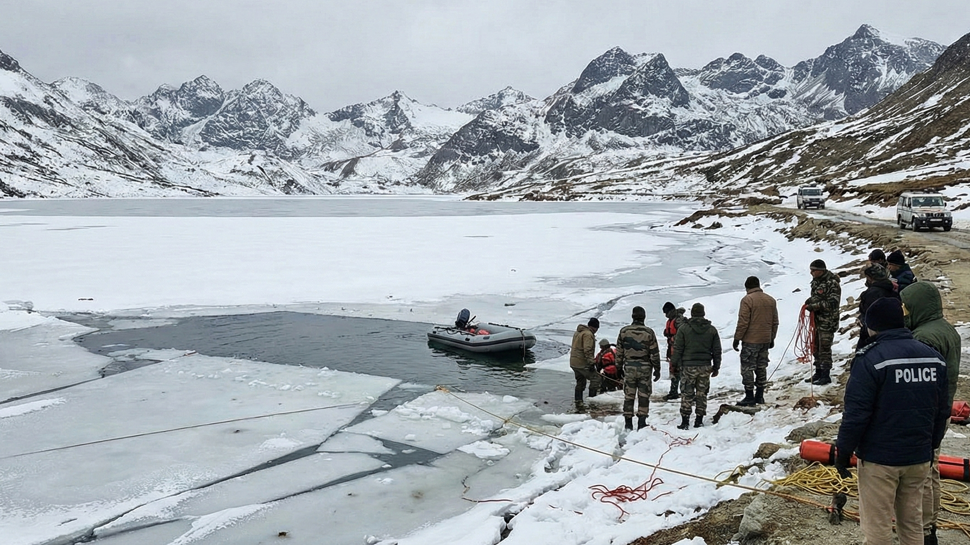 A tourist died and another went missing after slipping into the frozen Sela Lake near Tawang in Arunachal Pradesh. The victims were part of a group from Kerala. Rescue operations were halted due to extreme cold and poor visibility.