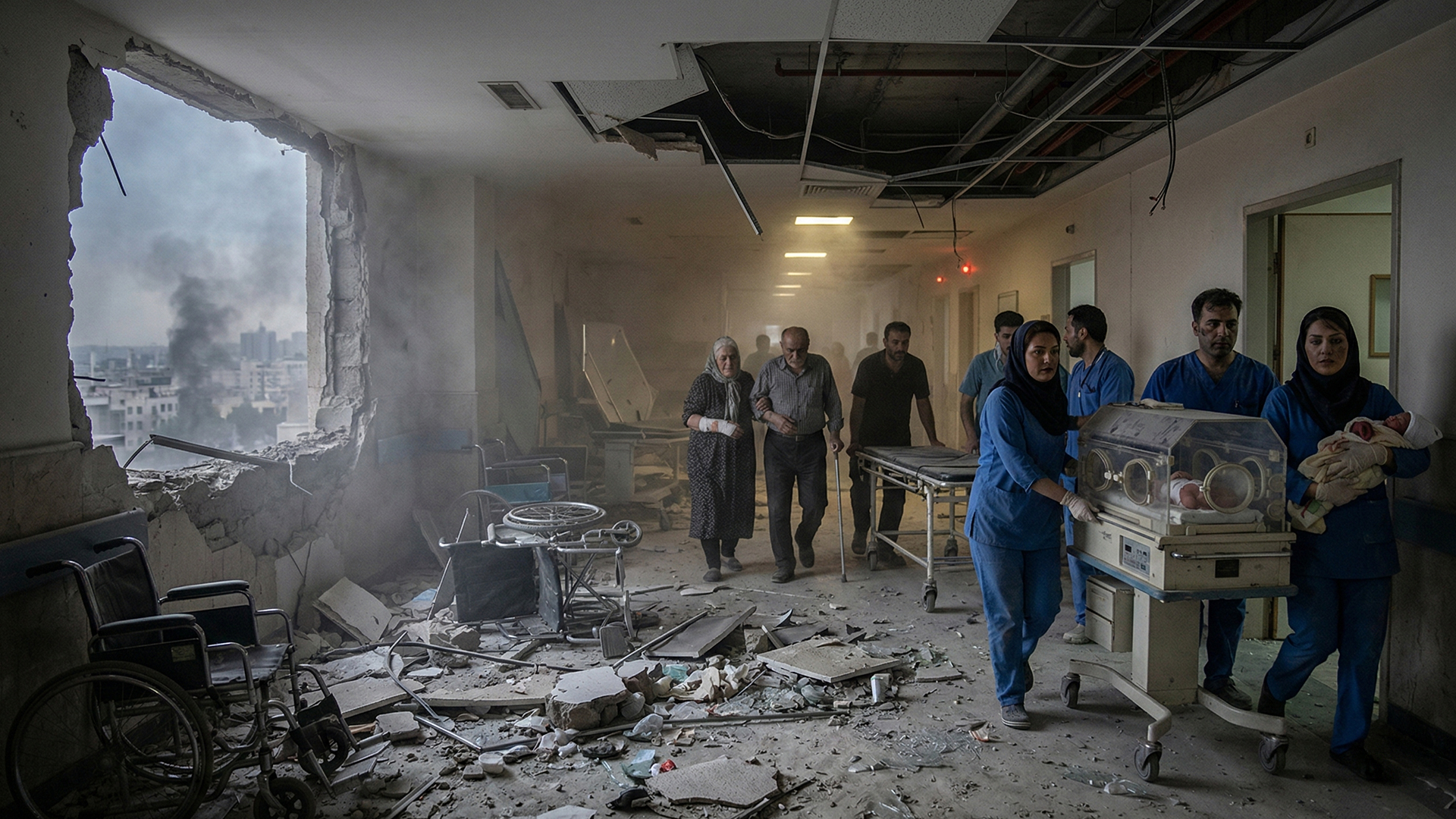 Israeli air strikes hit Gandhi Hospital in northern Tehran, causing damage and forcing patients to evacuate. Videos showed debris inside as Iran retaliates with missile and drone attacks.